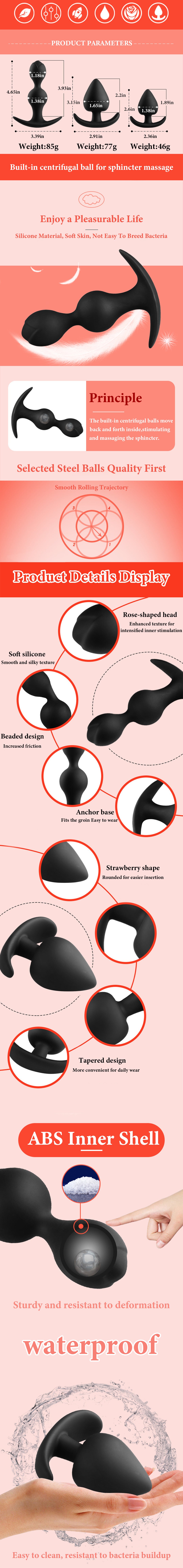 3-Piece Silicone Anal Plug Trainer Set Silicone Butt Plugs with Steel Balls