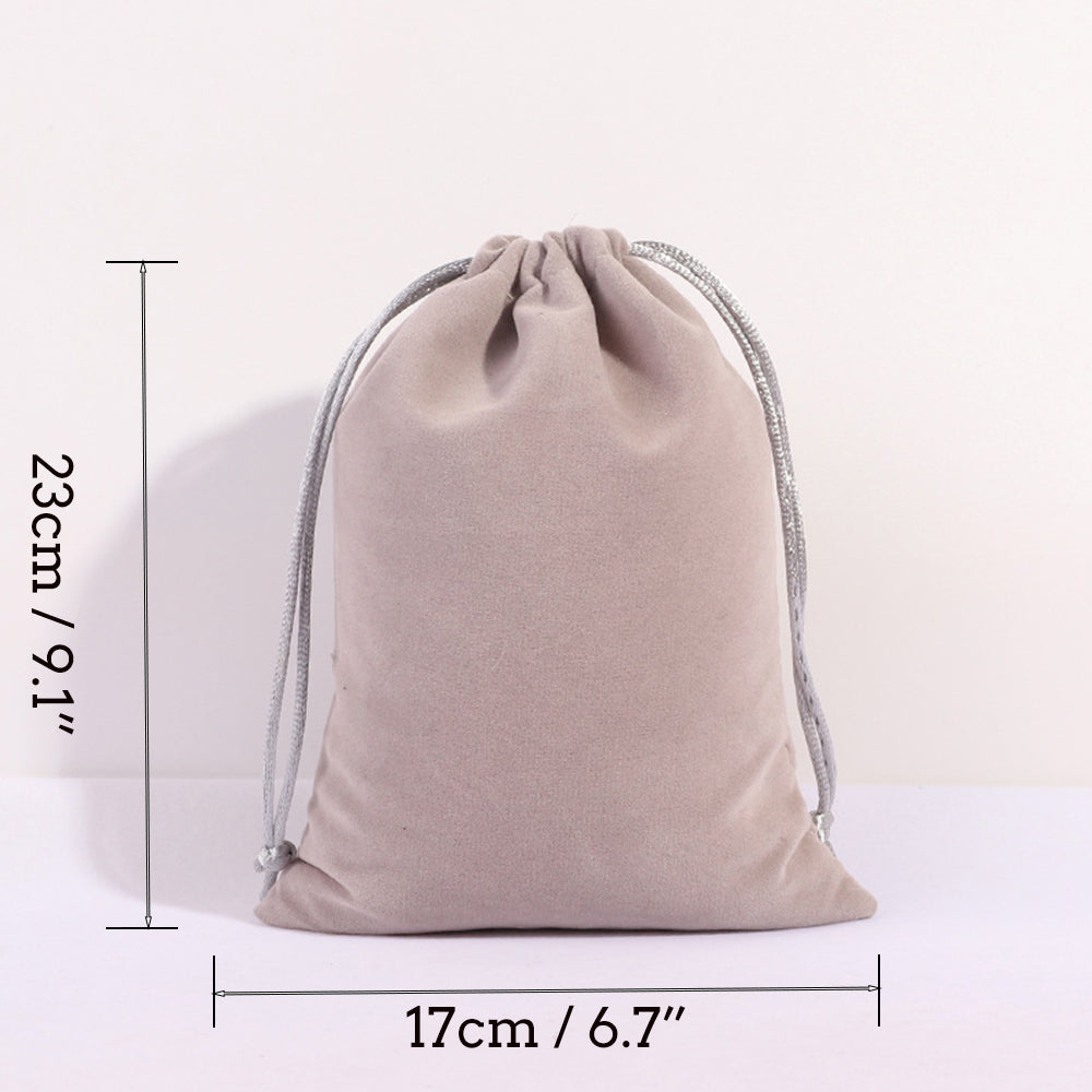 OPTIMIZED FOR SEX TOYS: This drawstring storage bag is the smallest in our range and is designed to efficiently hold all your sex toy treasures. It measures 17cm x 23cm, making it perfect for holding a variety of toys, keeping them organized and easily accessible. Its stylish gray velvet design adds a touch of romance and luxury to your toy storage space, blending seamlessly with your other personal belongings.