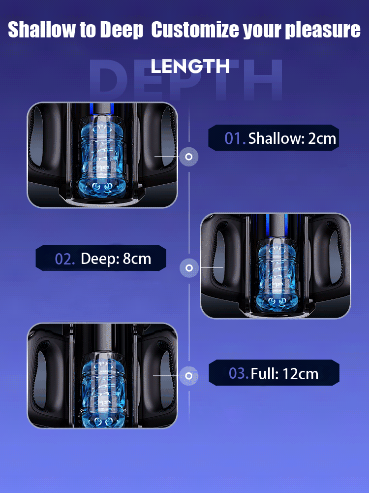 Indulge in tailored ecstasy with three thrusting depths: a teasing 2cm for delicate arousal, an intense 8cm for deeper penetration, and a full 12cm for complete, mind-blowing immersion. Customize your pleasure and drive yourself wild with every stroke.