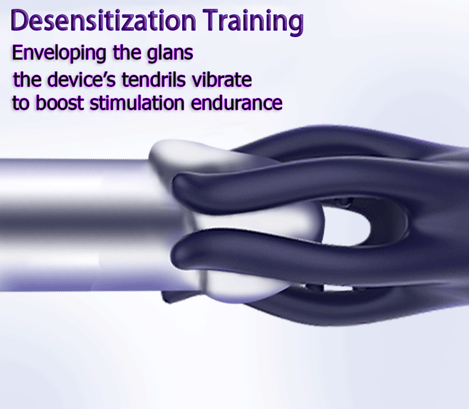 Unleash your desires with this provocative device. Its teasing tendrils envelop the glans, delivering intense vibrations that desensitize and train your nerves, amplifying endurance for longer, more electrifying experiences.
