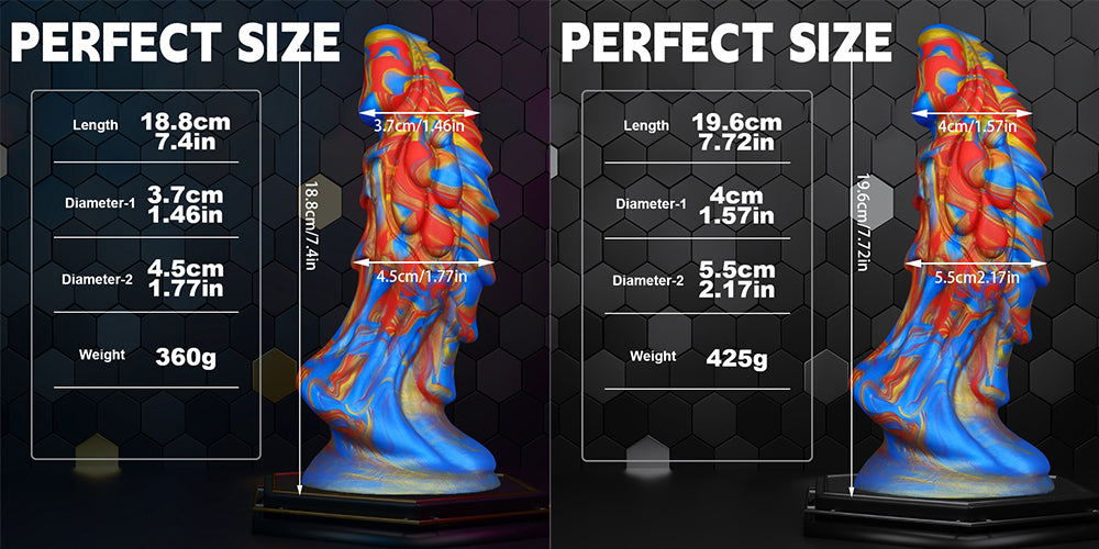 Vibrant Appearance: Created using an exclusive hand-mix-color technique, this dildo boasts a visually stunning appearance without the risk of color leak or fading. Unlike cheaper alternatives, the colors are seamlessly integrated into the toy, ensuring long-lasting vibrancy.