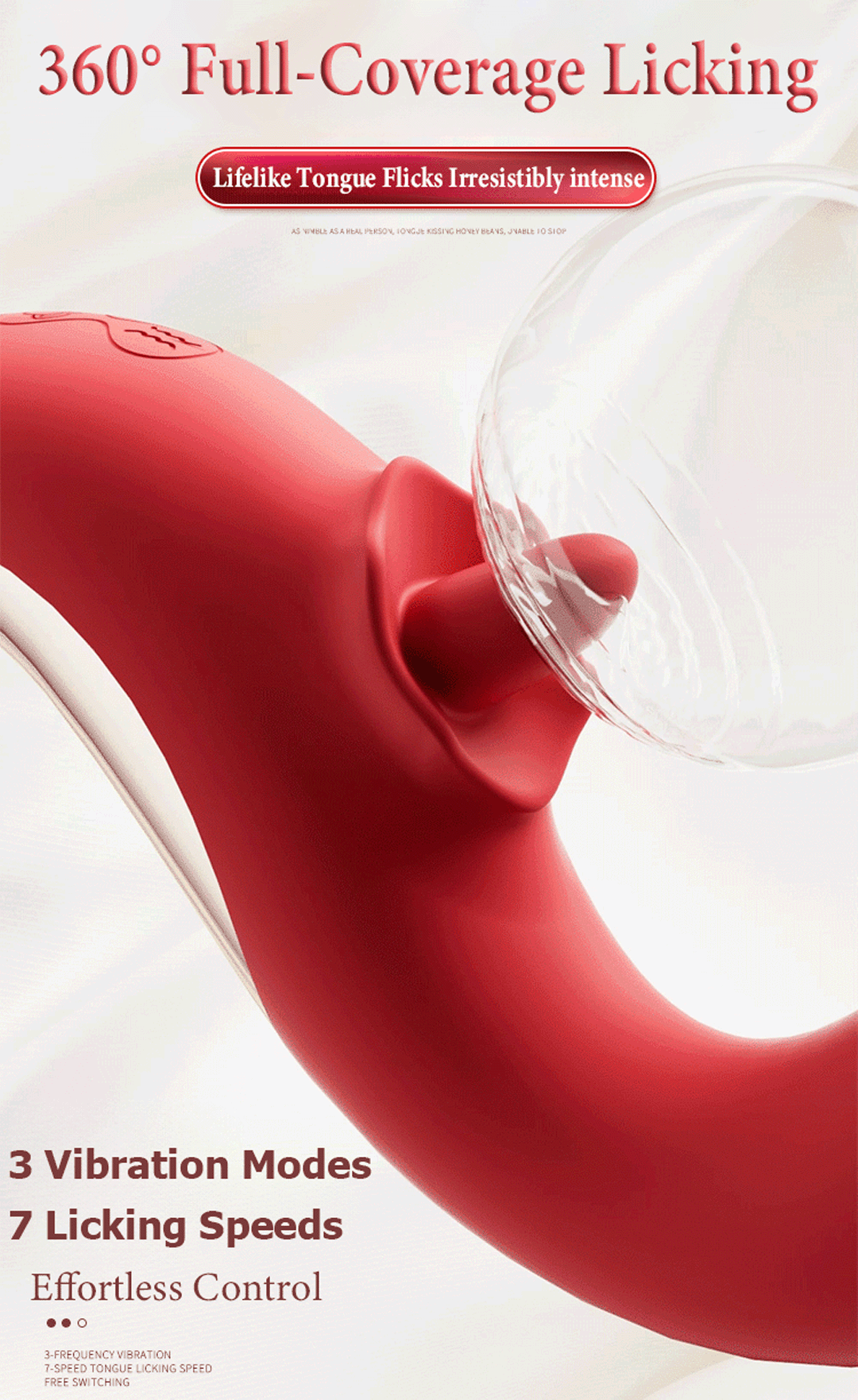 Designed to fit the body's contours perfectly, this sex toy's curved shape targets the G-spot, while its tongue-licking and vibrating functions offer precise clitoral stimulation. The ergonomic, easy-to-grip handle ensures effortless control, even during your most intense moments.