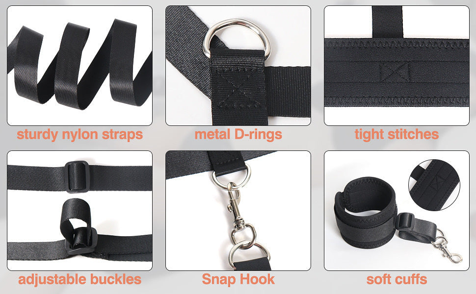 Sex Bondage Sets BDSM kits,sex restraints bdsm harness ,Super Easy Install sex rope with Handcuffs Ankle Cuff forheavy fetish Adults Women Couples Game Pleasure