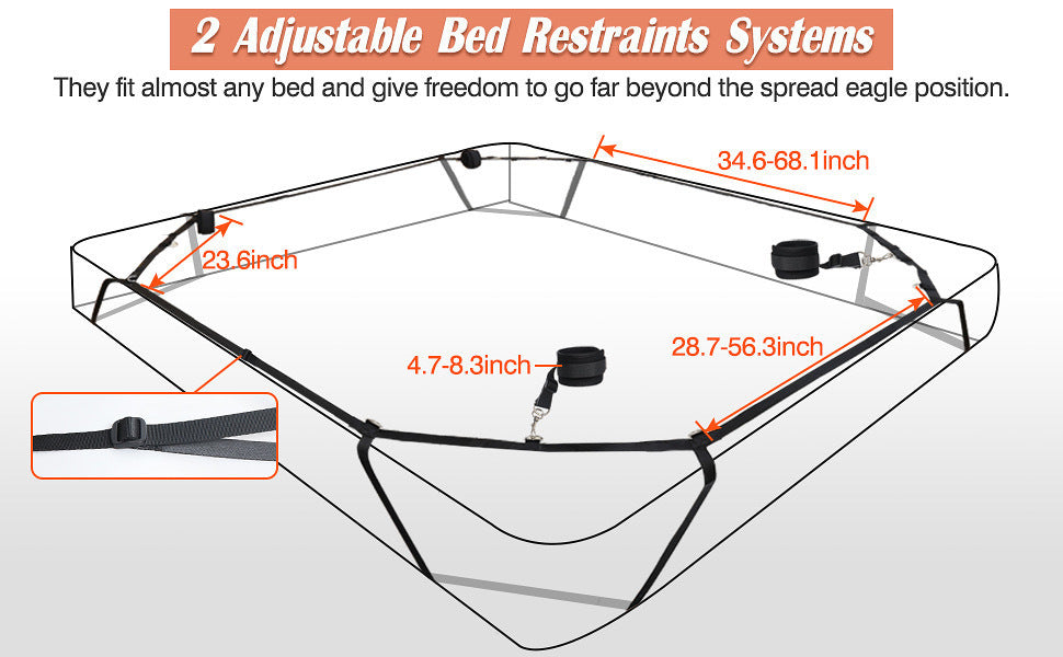 With extended straps and adjustable cuffs, you can secure your partner in the most tantalizing positions, ensuring both comfort and restraint. The body-safe, durable materials promise an experience that’s as intense as it is safe, keeping you locked in place for as long as your desires demand.