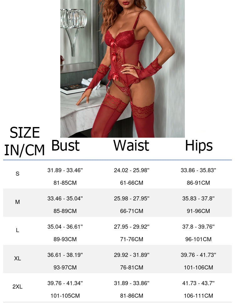 Sexy bodysuits for women Lace Lingerie Set with Garter Belt sets BabyDolls Panty with Stockings 4 Piece Set