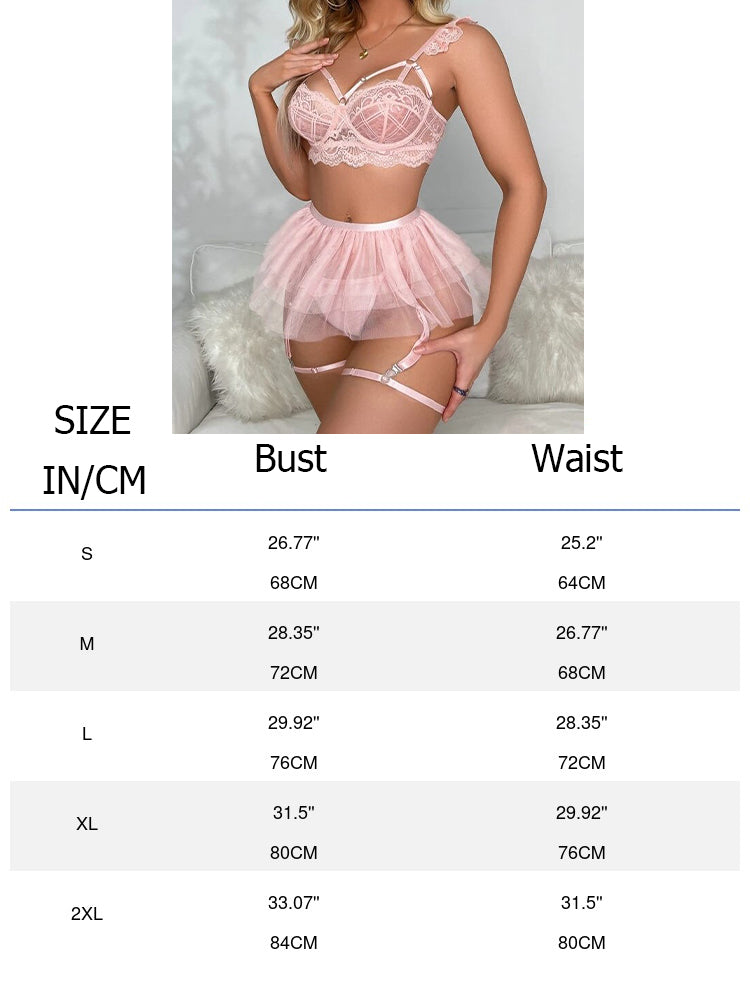 Floral Lace Garter Skirt Bra and Panty Set - Strappy Lingerie Set