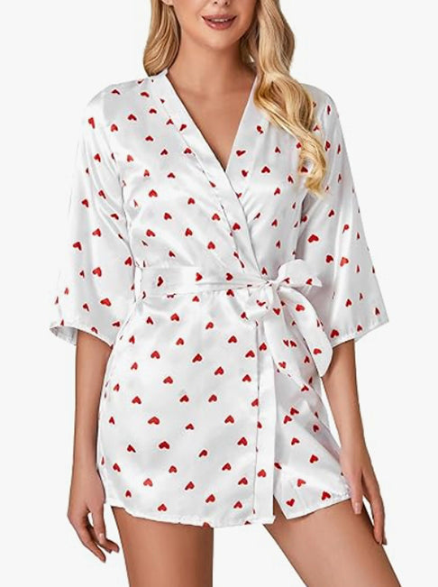 Elegant Silk Robes: Luxurious V-neck kimono-style silk robes with an external matching belt for a secure fit. Snuggle up in this sexy lingerie robe to elevate intimate moments.