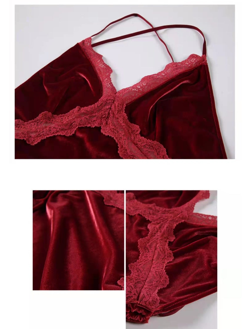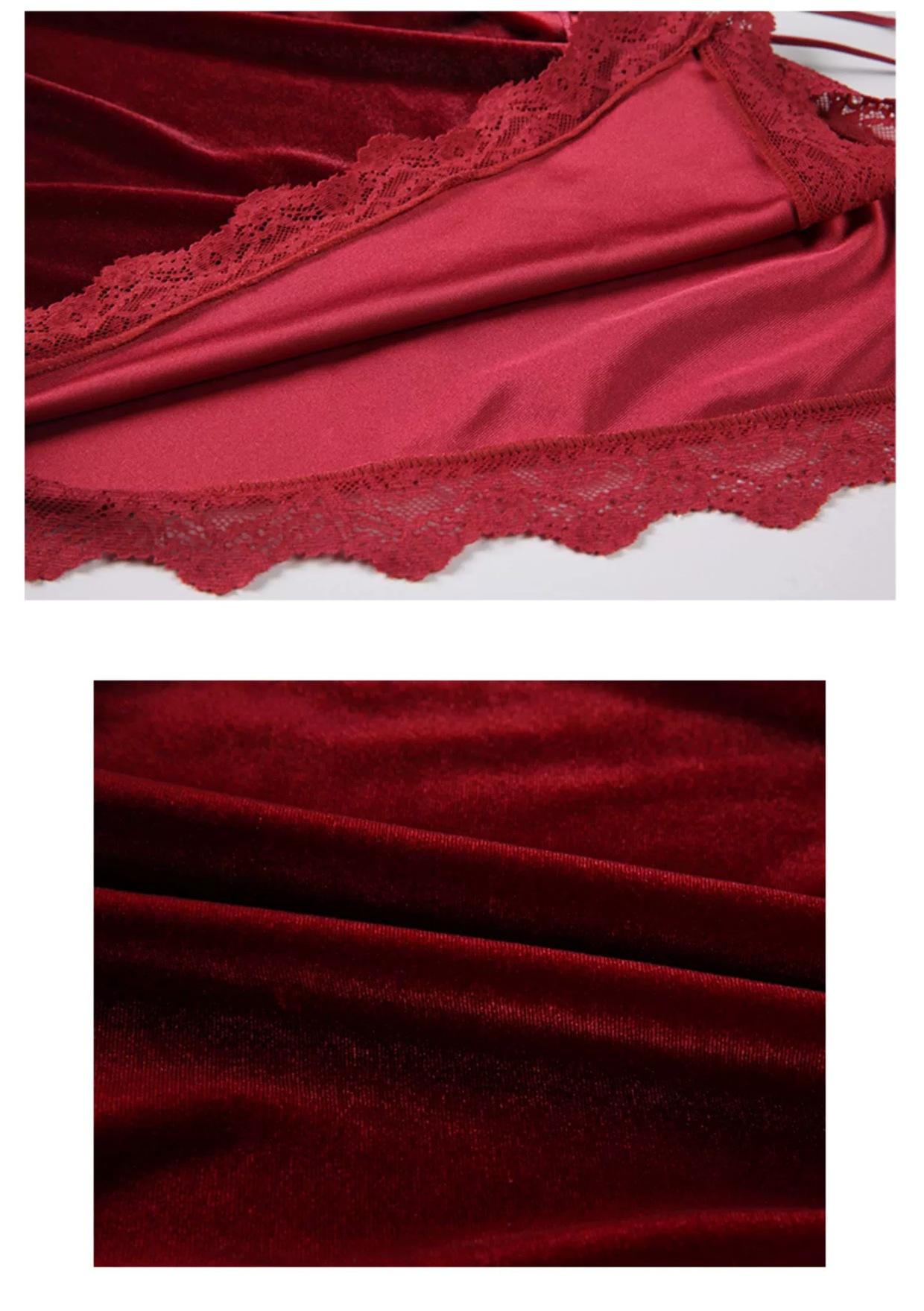 Women's sexy velvet pajamas deep V tempting diagonal slits large size sexy pajamas